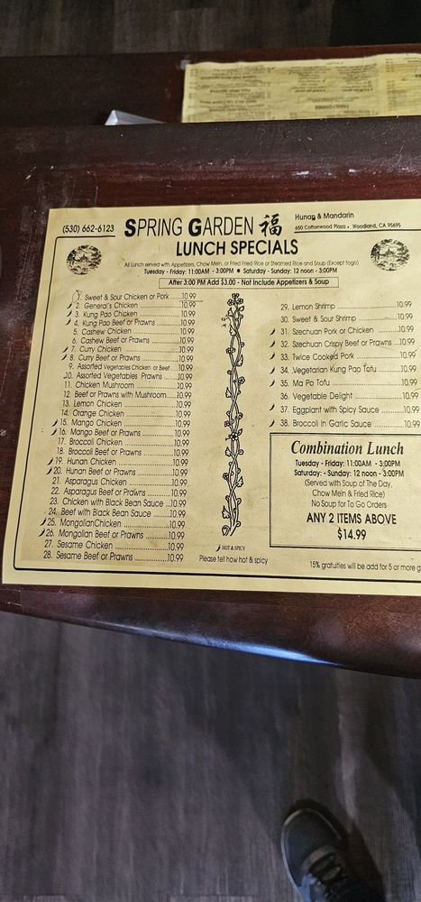 Welcome to Spring Garden Restaurant, a delightful gem nestled in Woodland, CA, that exemplifies the warmth of traditional Chinese dining. With a welcoming atmosphere and a menu brimming with authentic flavors, Spring Garden has quickly earned its reputation as a beloved local favorite.